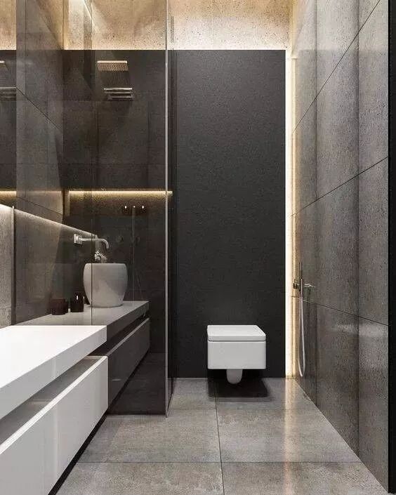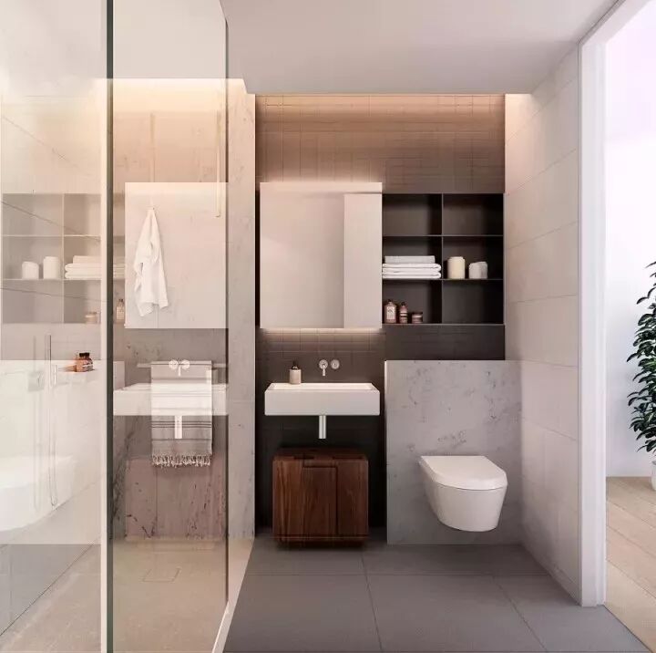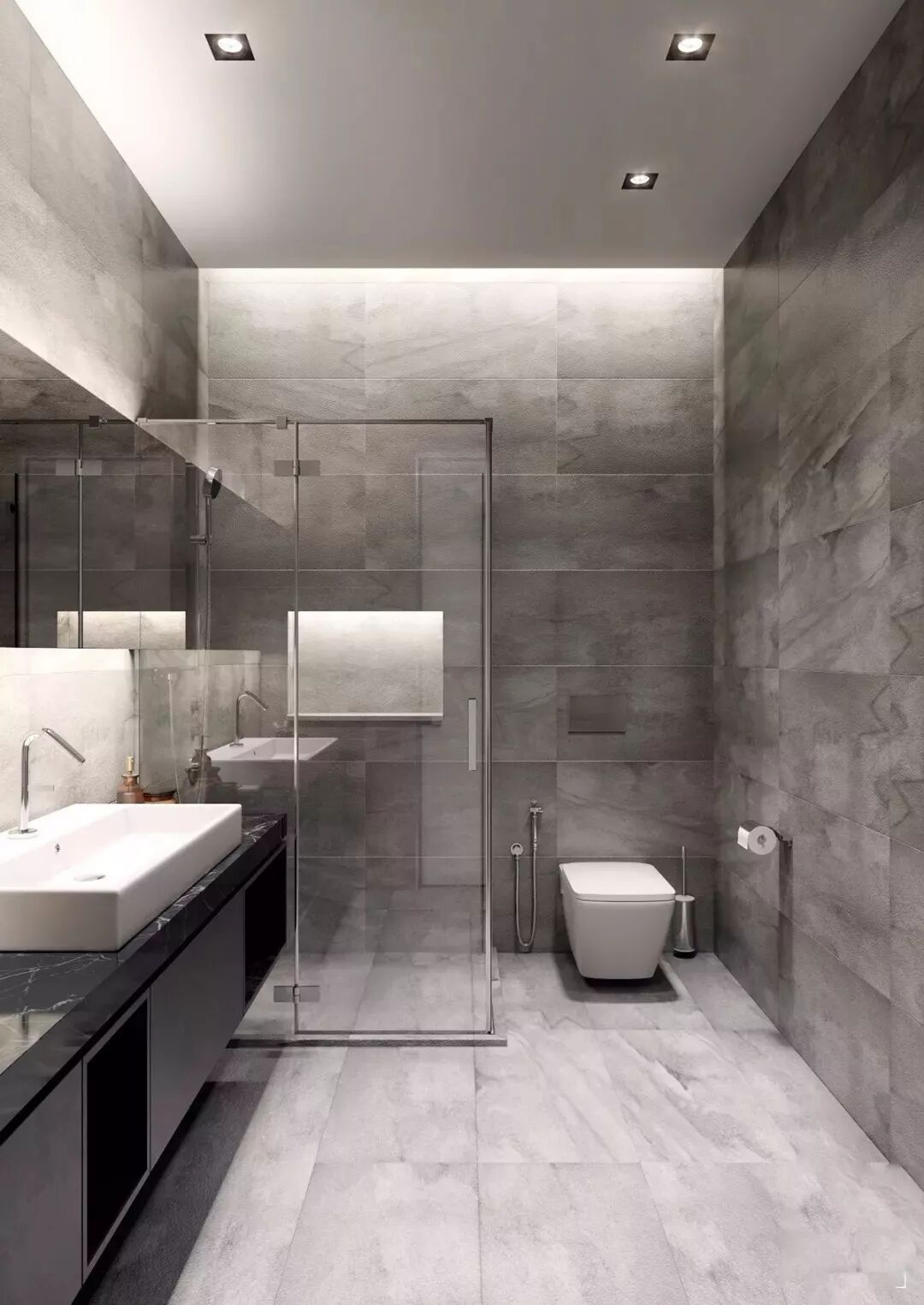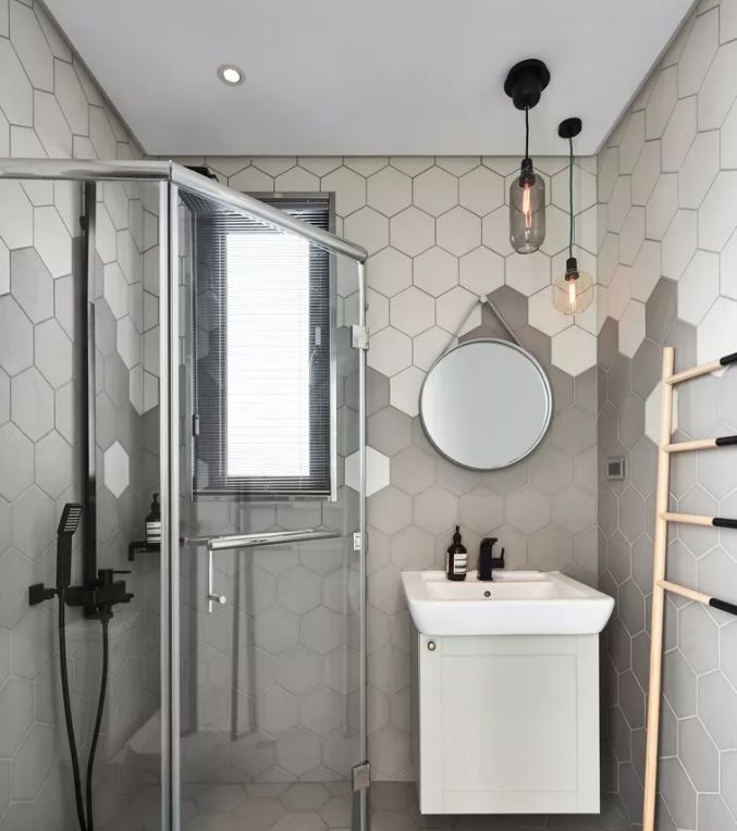 今年的工业化设计会有所改善,加入了酷炫凌厉的混凝土、质朴本真的水泥、结构严谨的金属框架的应用。金属门、金属框架在小浴室的应用更得心应手,相对狭长的设计,节约了浴室空间。