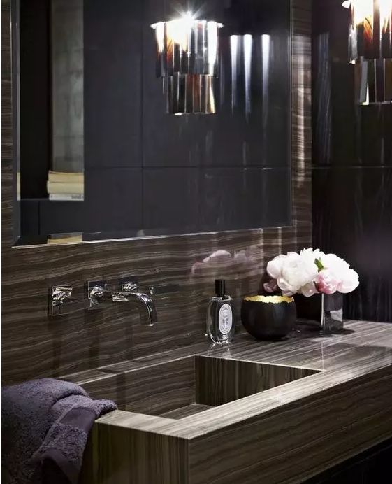 卫生间不仅仅在地面、墙面可以用水磨石,台盆或者浴室柜也可以挑选一款这样的材质。