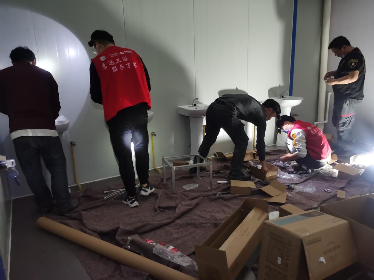 由于工作量大、时间有限,奋战在温州方舱医院的惠达人时常连夜鏖战,所有人都卯足了劲,克服各种阻力按计划推进,保证高效地完成产品安装。