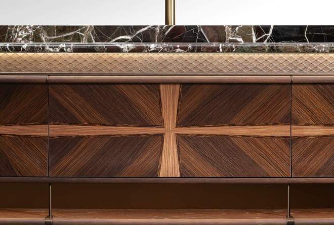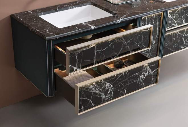 没有繁复的雕花和耀眼的金色,却用简练的线条、厚重的大理石和优雅的弧线,传递着一种沉稳而永恒的力量。这种美,历经千年,依然触动着如今的我们。采用的是纳秋绿天然大理石,纹理如流动的山涧青苔,每一道都是自然的写意,并且运用突破性工艺,将这种珍贵的天然大理石成功应用在抽屉面板!让大理石不再是台面的专属。