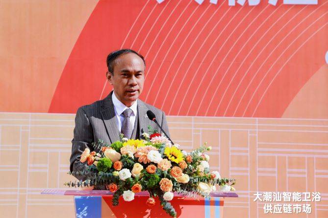 在致辞环节,主办方潮州市大潮汕家居装饰广场有限公司董事长 邱璋浩阐述了平台对产业链的价值重构作用。他表示:“大潮汕智能卫浴供应链市场不仅是一个交易场所,更是产业资源的连接器和放大器。我们平台将重点引入成品与核心配套企业,并通过租金优惠、金融支持等政策,助力企业降本增效、协同发展,强化产业链协同韧性,让‘潮州制造’在闭环生态中提升整体竞争力,打造成为“全球智能卫浴采购第一站”。